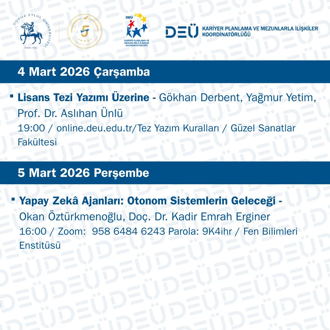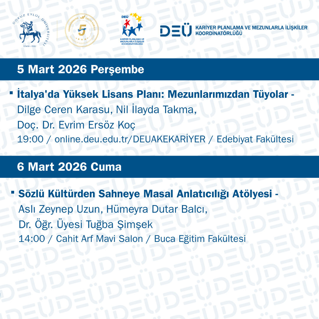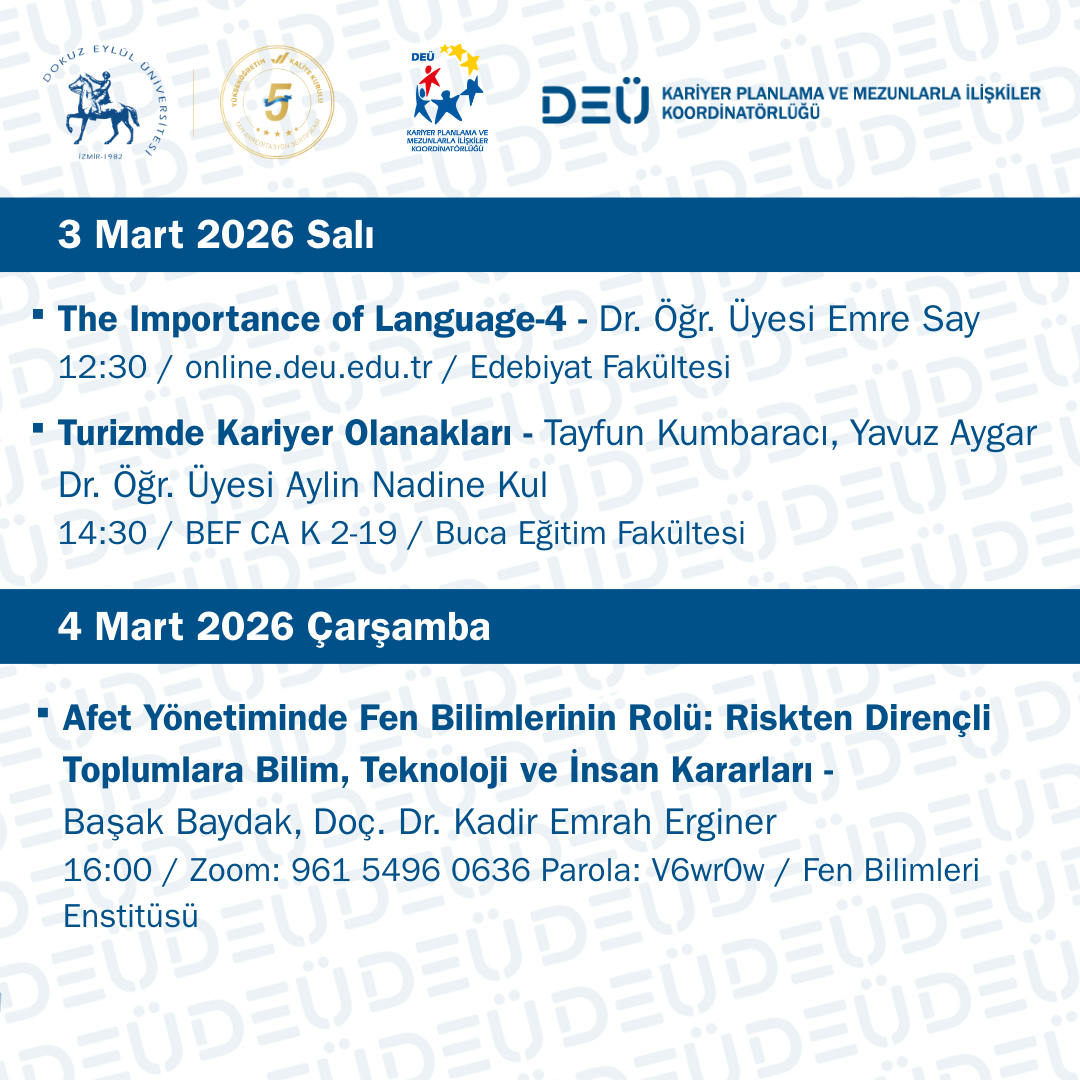 2 – 6 Mart DEÜ Kariyer ve Mezun Komisyonu Etkinlikleri